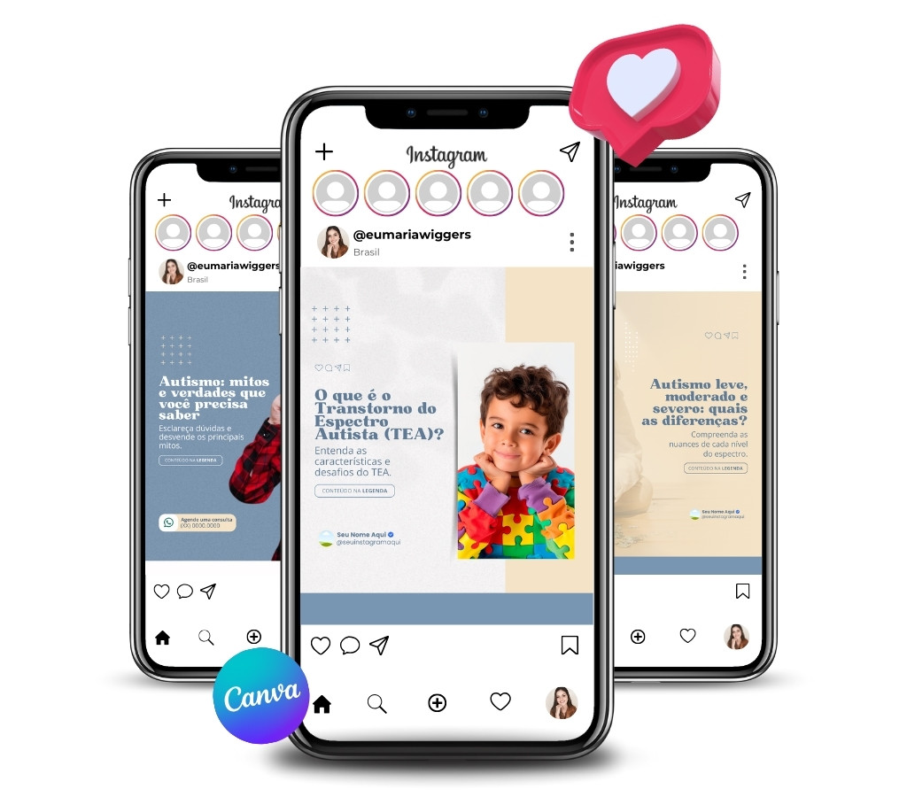 Se você não tem tempo para criar posts ou simplesmente não sabe como deixar seu perfil bonito e profissional, esse pack é a solução perfeita: artes prontas, 100% editáveis no Canva, feitas para atrair clientes todos os dias.