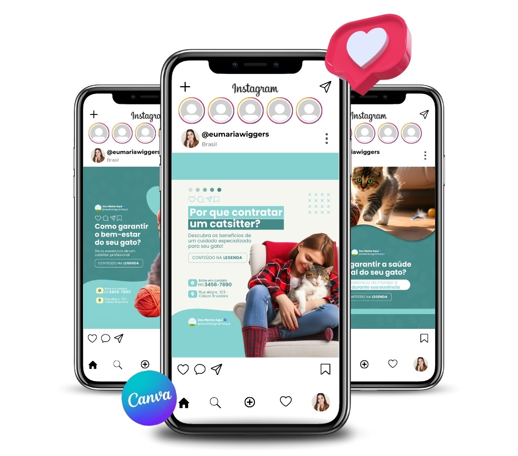 As artes são totalmente editáveis no Canva gratuito. Você pode ajustar cada detalhe conforme a identidade do seu negócio.