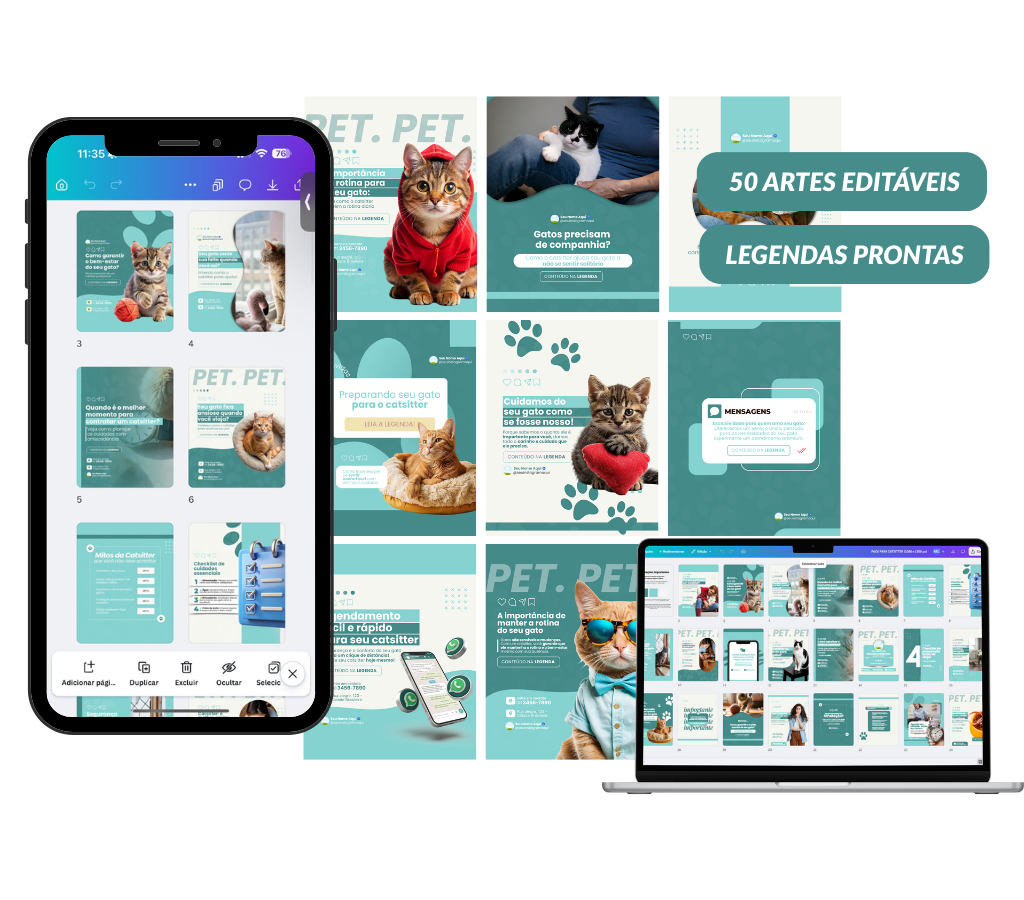 Se você não tem tempo para criar posts ou simplesmente não sabe como deixar seu perfil bonito e profissional, esse pack é a solução perfeita: artes prontas, 100% editáveis no Canva, feitas para atrair clientes todos os dias.