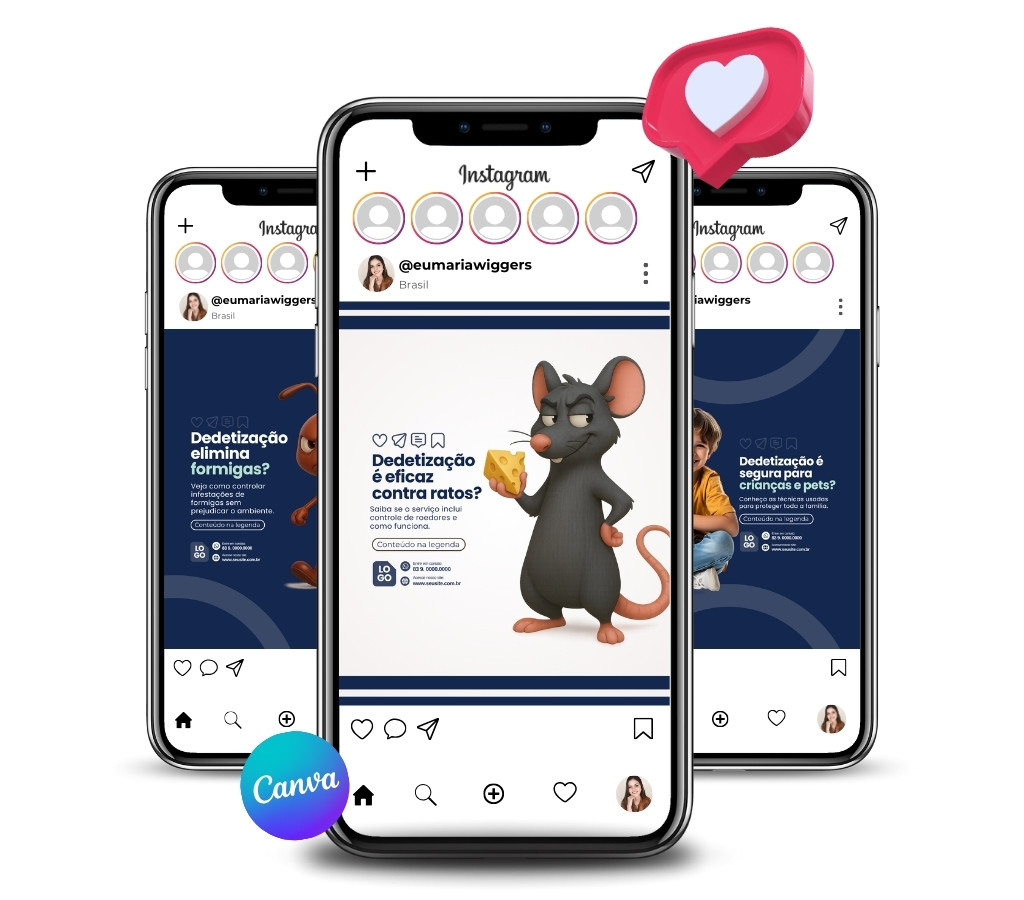 As artes são totalmente editáveis no Canva gratuito. Você pode ajustar cada detalhe conforme a identidade do seu negócio.