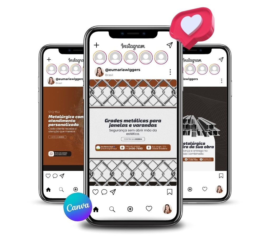 As artes são totalmente editáveis no Canva gratuito. Você pode ajustar cada detalhe conforme a identidade do seu negócio.