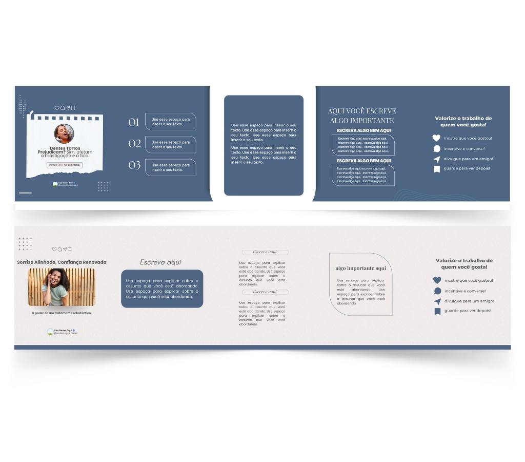 Um material pensado para profissionais que desejam apresentar seus serviços com um pacote profissional e conteúdo de alta qualidade. Todas as artes podem ser personalizadas no Canva gratuito — cores, textos, imagens e cada detalhe ajustado ao seu estilo. Além de acompanhar legendas prontas e editáveis para todos os posts.